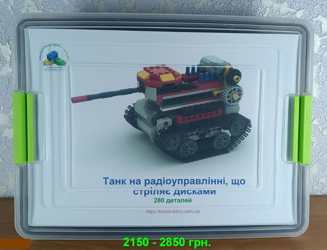 Набір деталей системи LEGO Technic для складання рухомого танка, що стріляє дисками.